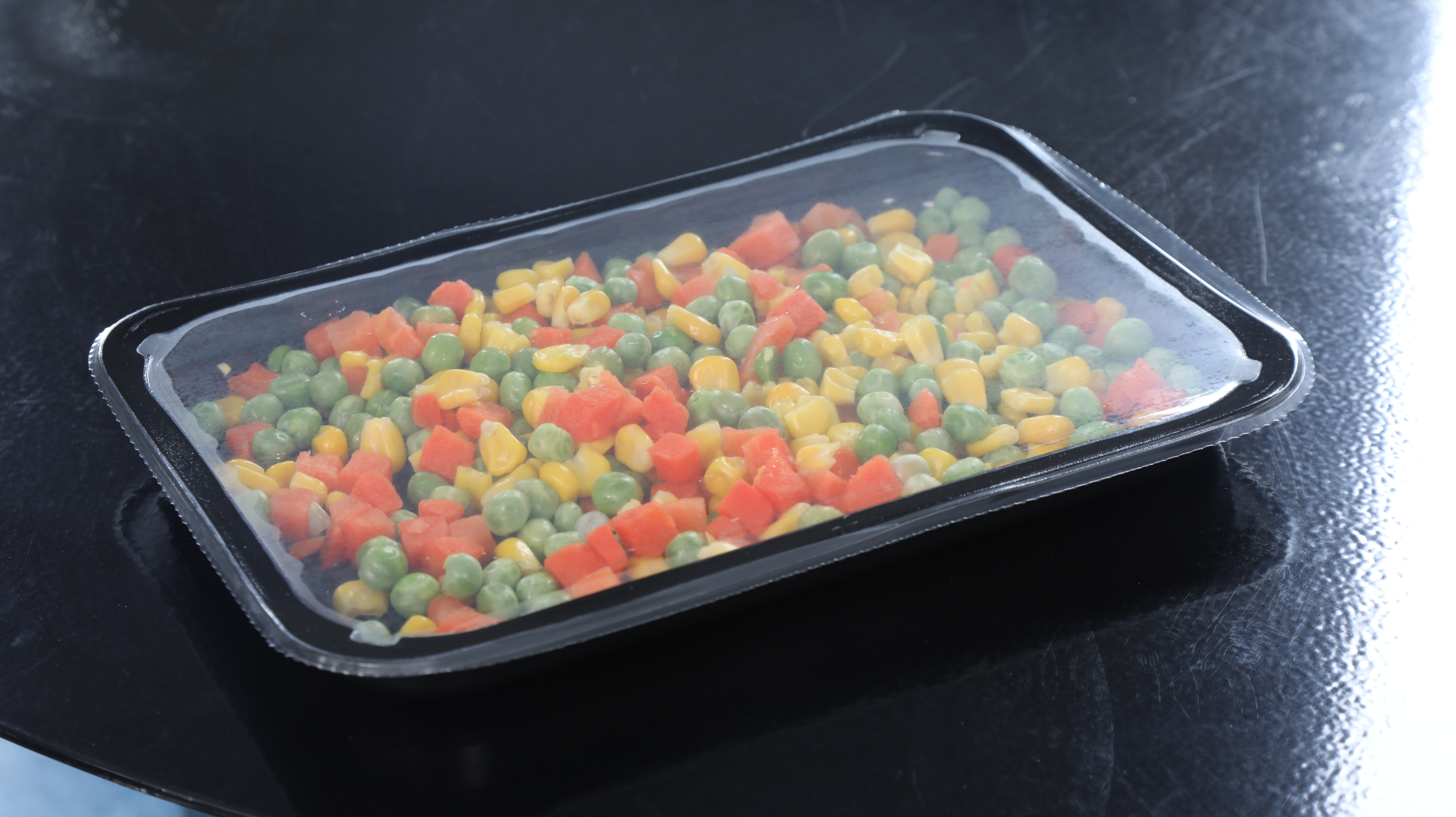 Mesin pengemasan gas vakum baki menggantikan udara di dalam kantong dengan gas campuran pelindung; menghambat pertumbuhan sebagian besar mikroorganisme yang dapat membuat makanan rentan terhadap manja dan trichinosis; Kurangi respirasi makanan aktif (seperti buah) sehingga dapat memperpanjang waktu yang baru.